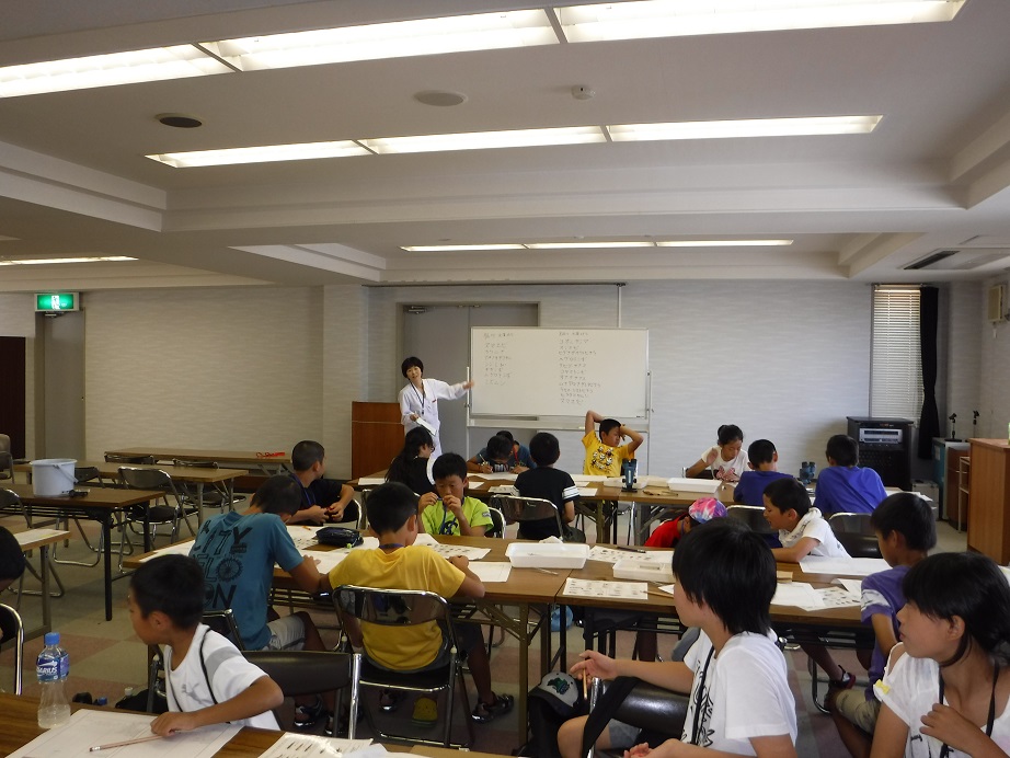 午後からの室内学習では、採集した水生生物の名前を調べそこに生息する生物からみた水質について学習し、狐川と足羽川の水質の違いについて理解したことと思います。また、簡易水質検査キットを用いて、今回調べた川の水のCOD(化学的酸素消費量)を測定し、それぞれの水質の違いについて数値で確認しました。両河川ともCOD値は低く、狐川と足羽川では差はみられませんでした。