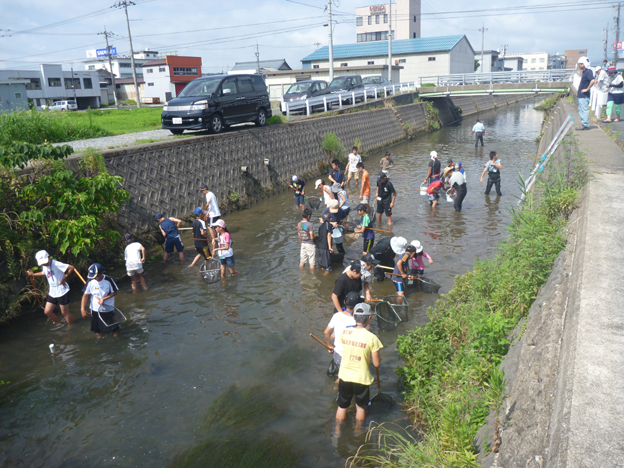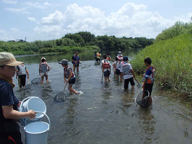 狐川では、カワニナ、シジミ類、イトトンボ、アメリカザリガニ、ヌマエビ、ハグロトンボ、コヤマトンボの水生生物と、メダカ、ギンブナ、タモロコ、ナマズ、タイリクバラタナゴ、ドジョウの魚類を採集し、足羽川では、ヒゲナガカワトビゲラ、オナガサナエ、コオニヤンマ、ヒラタドロムシ、ダビドサナエ、エルモンヒラタカゲロウ、コヤマトンボ、ガガンボ、オオヤマカラゲラの水生生物と、ヌマチチブ、トウヨシノボリ、アジメドジョウ、アブラハヤ、カジカ中卵型の魚類を採集しました。