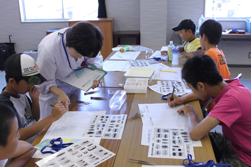 午後からの室内学習では、採集した水生生物の名前を調べそこに生息する生物からみた水質について学習し、狐川と足羽川の水質の違いについて理解したことと思います。また、簡易水質検査キットを用いて、今回調べた川の水、家庭用浄化槽処理水のCOD(化学的酸素消費量)を測定し、それぞれの水質の違いについて数値で確認しました。